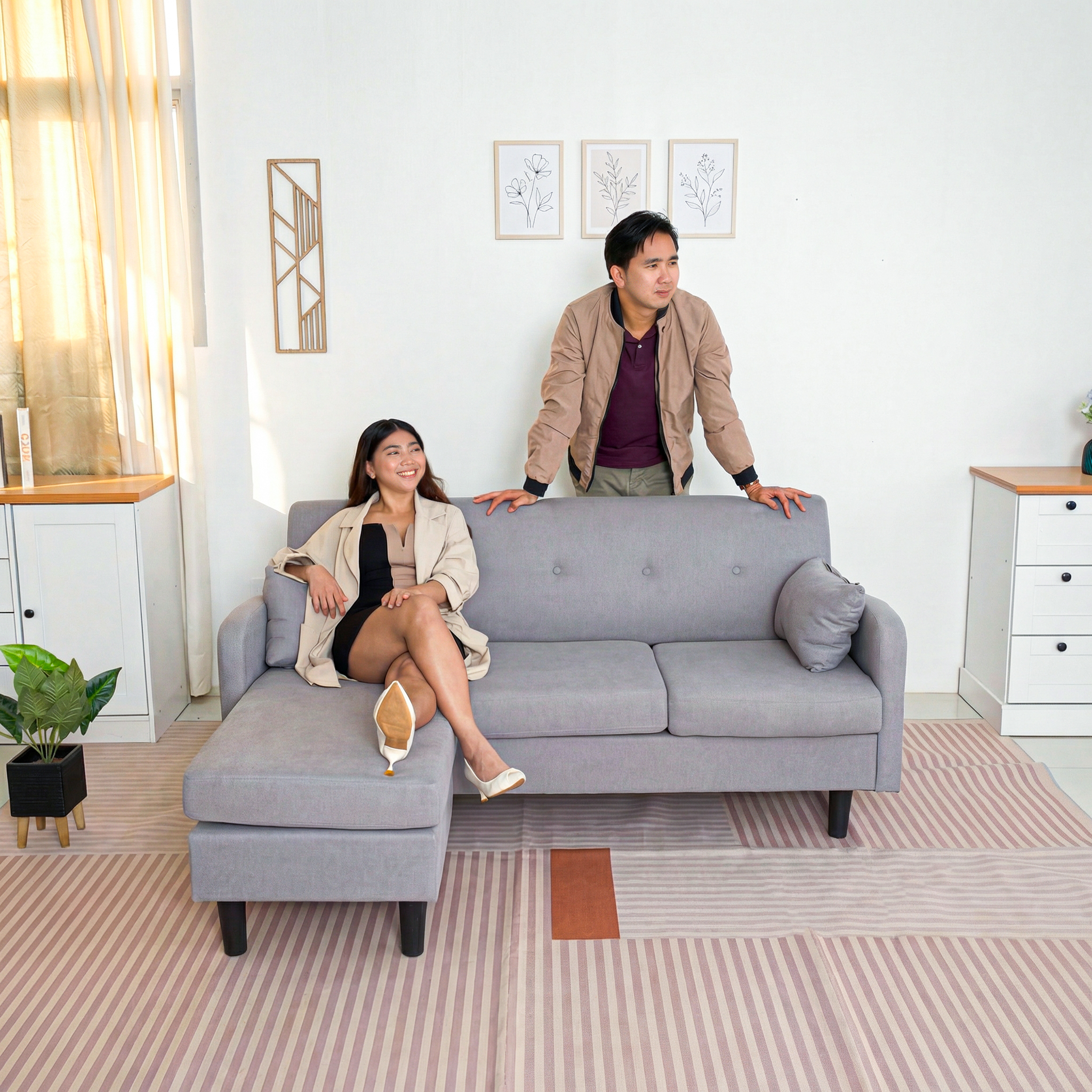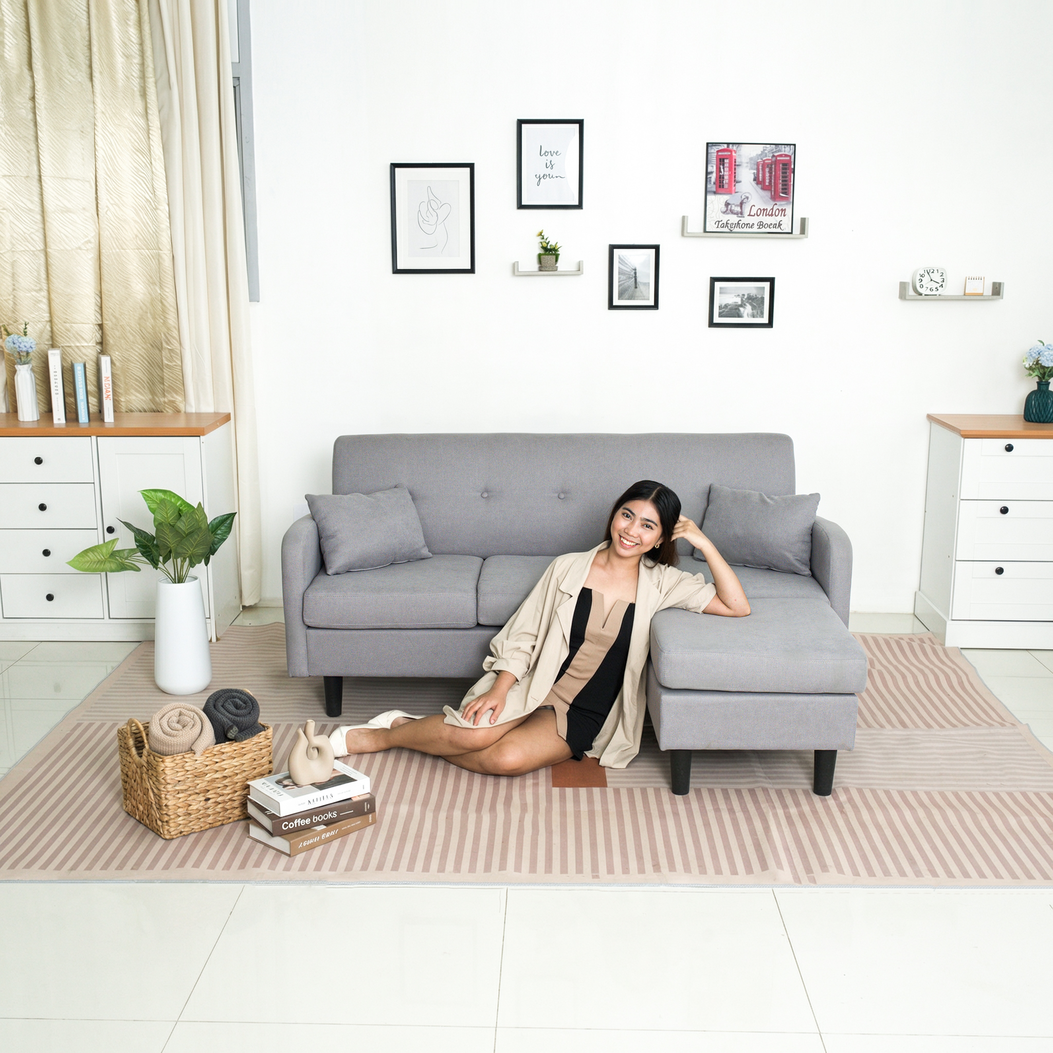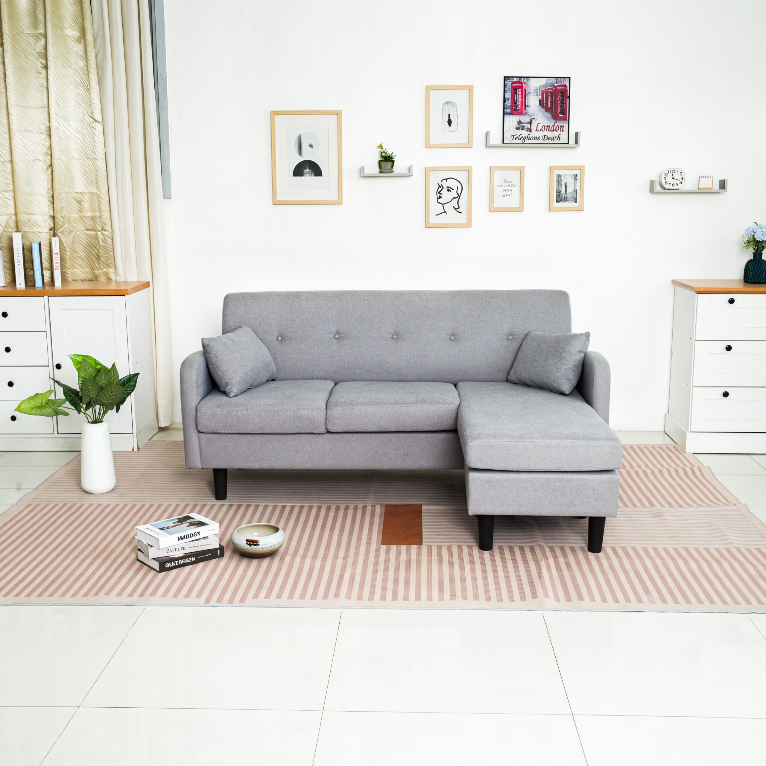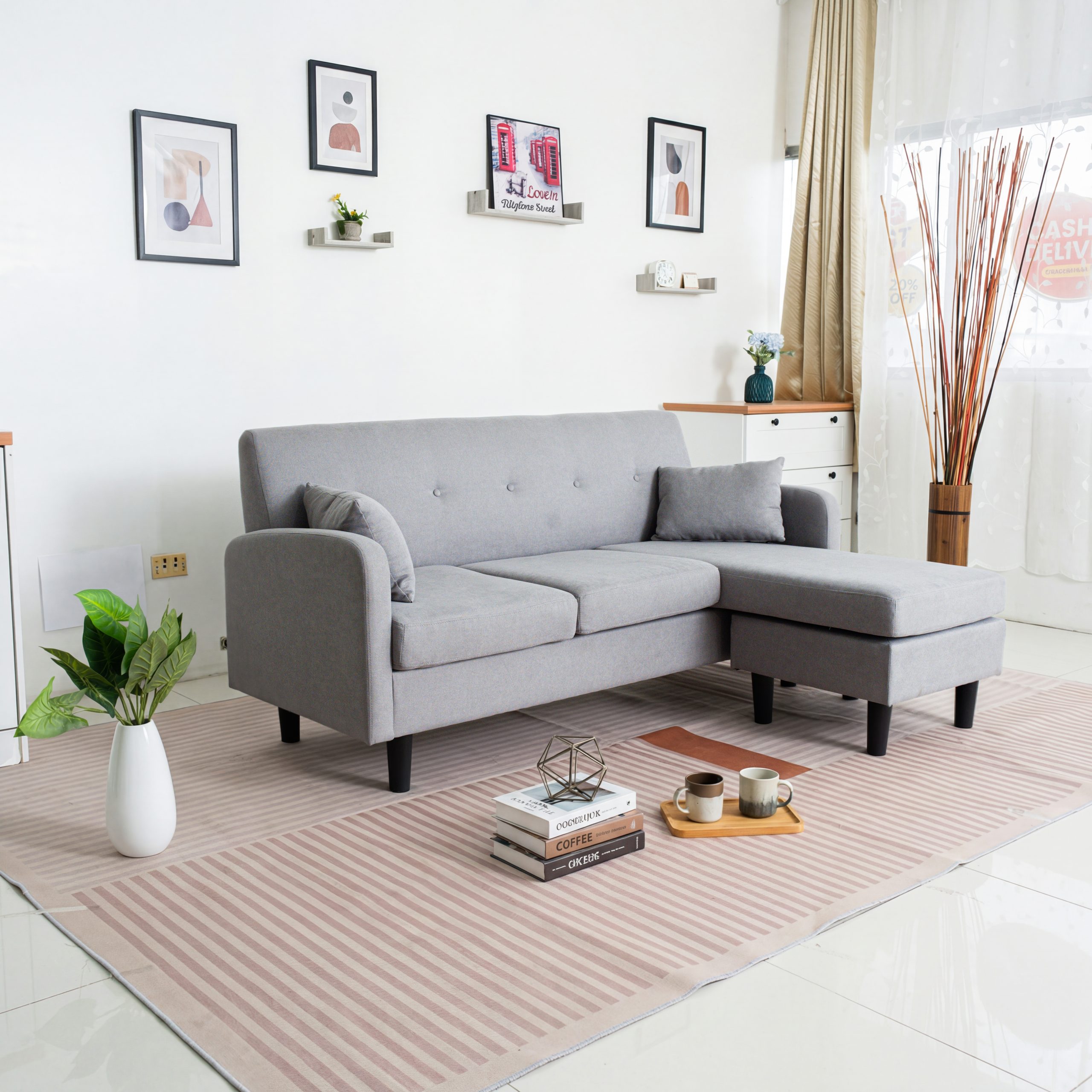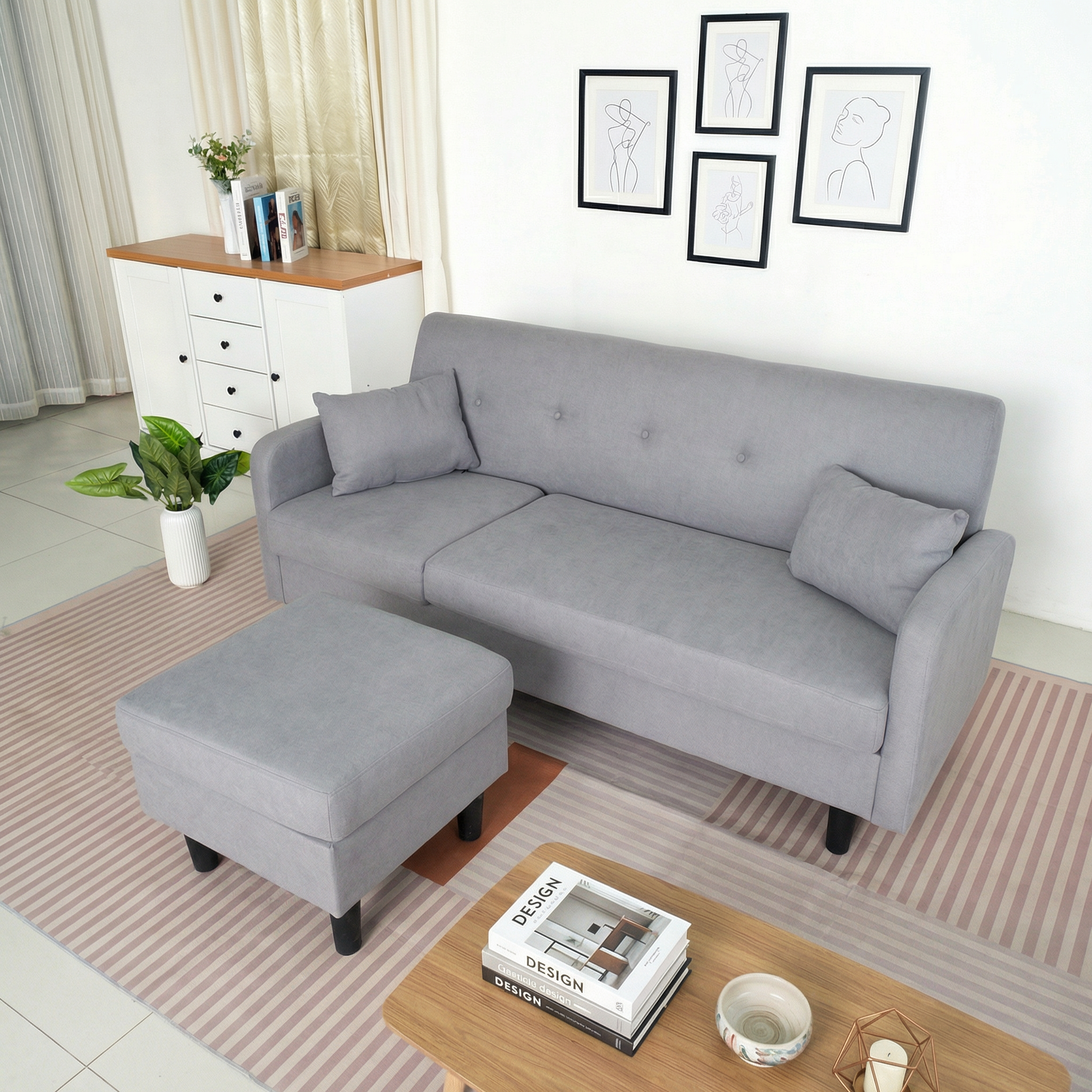 The Logan Fabric Sofa with Ottoman is a stylish, convertible corner sofa with a fabric cover, two pillows, and multiple color options to complement any interior.