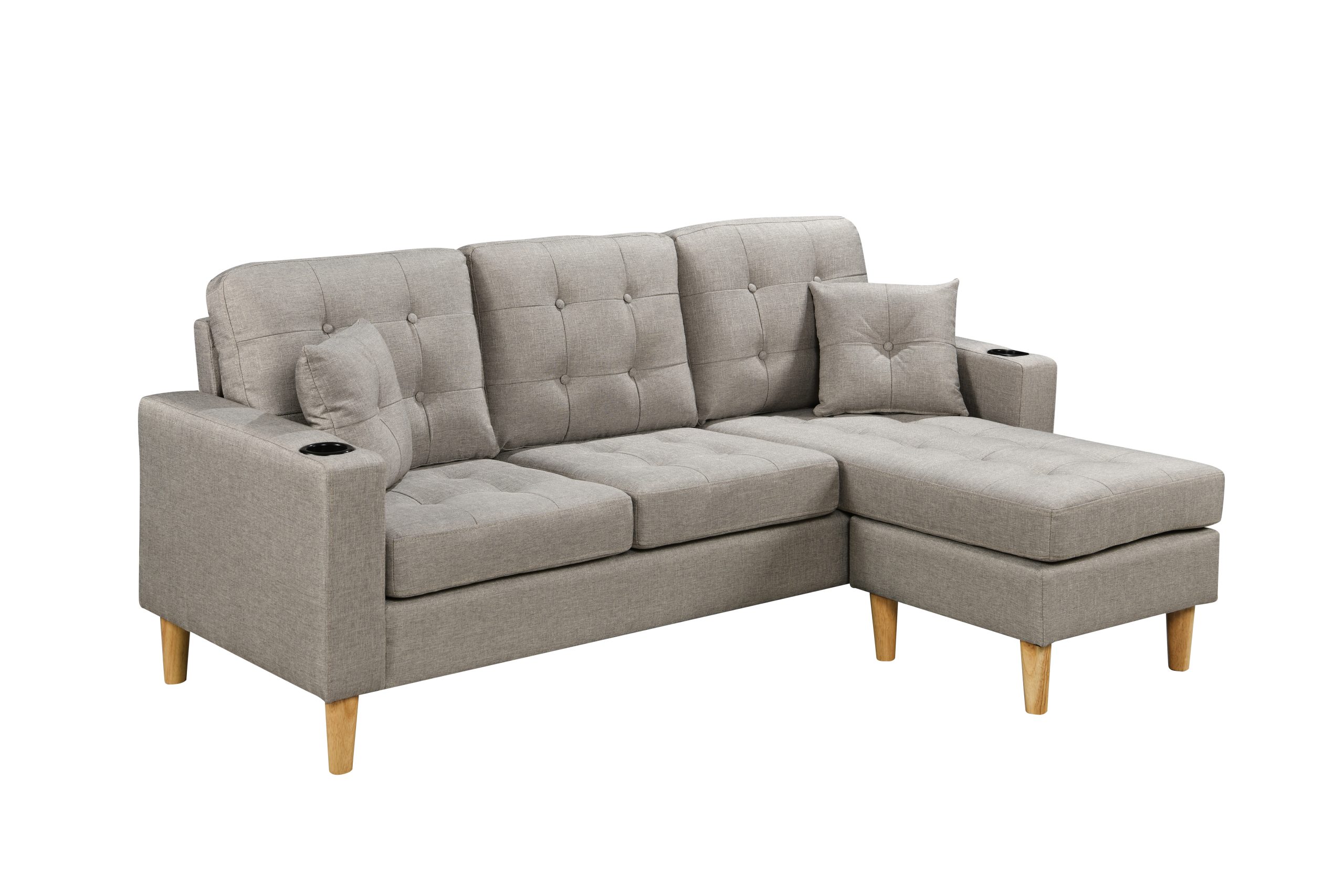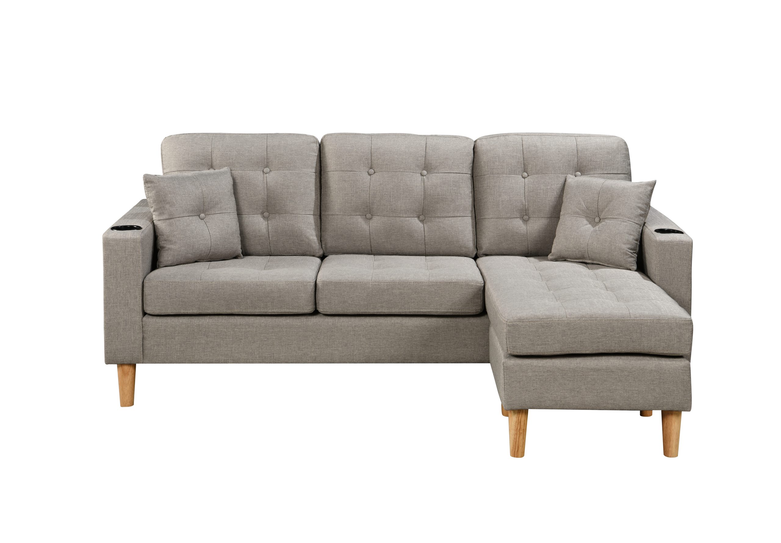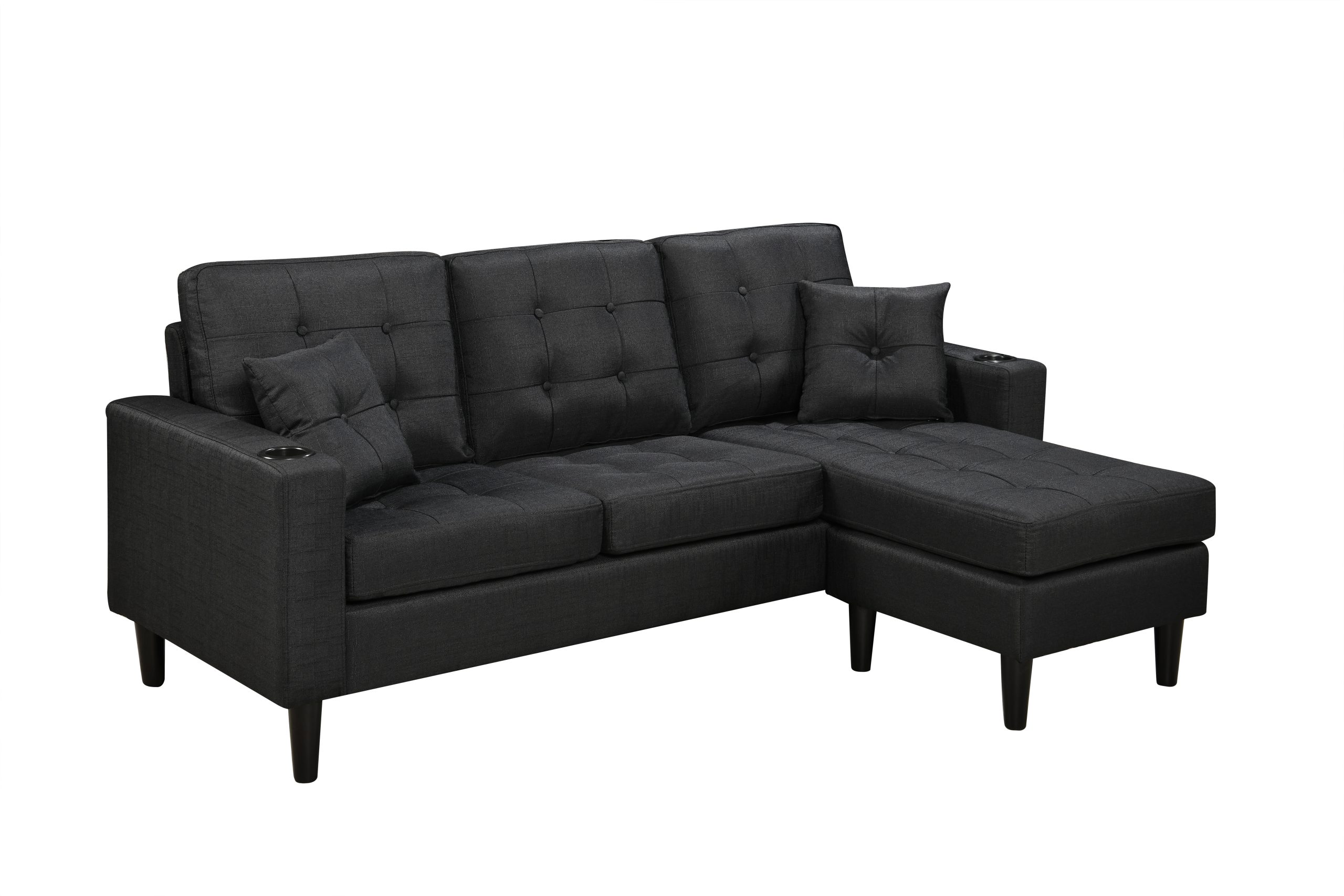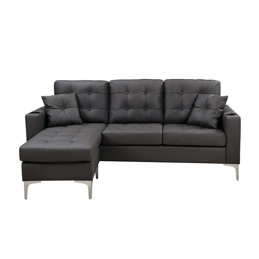 The 3-Seater Sofa comes with an ottoman and Cupholders.