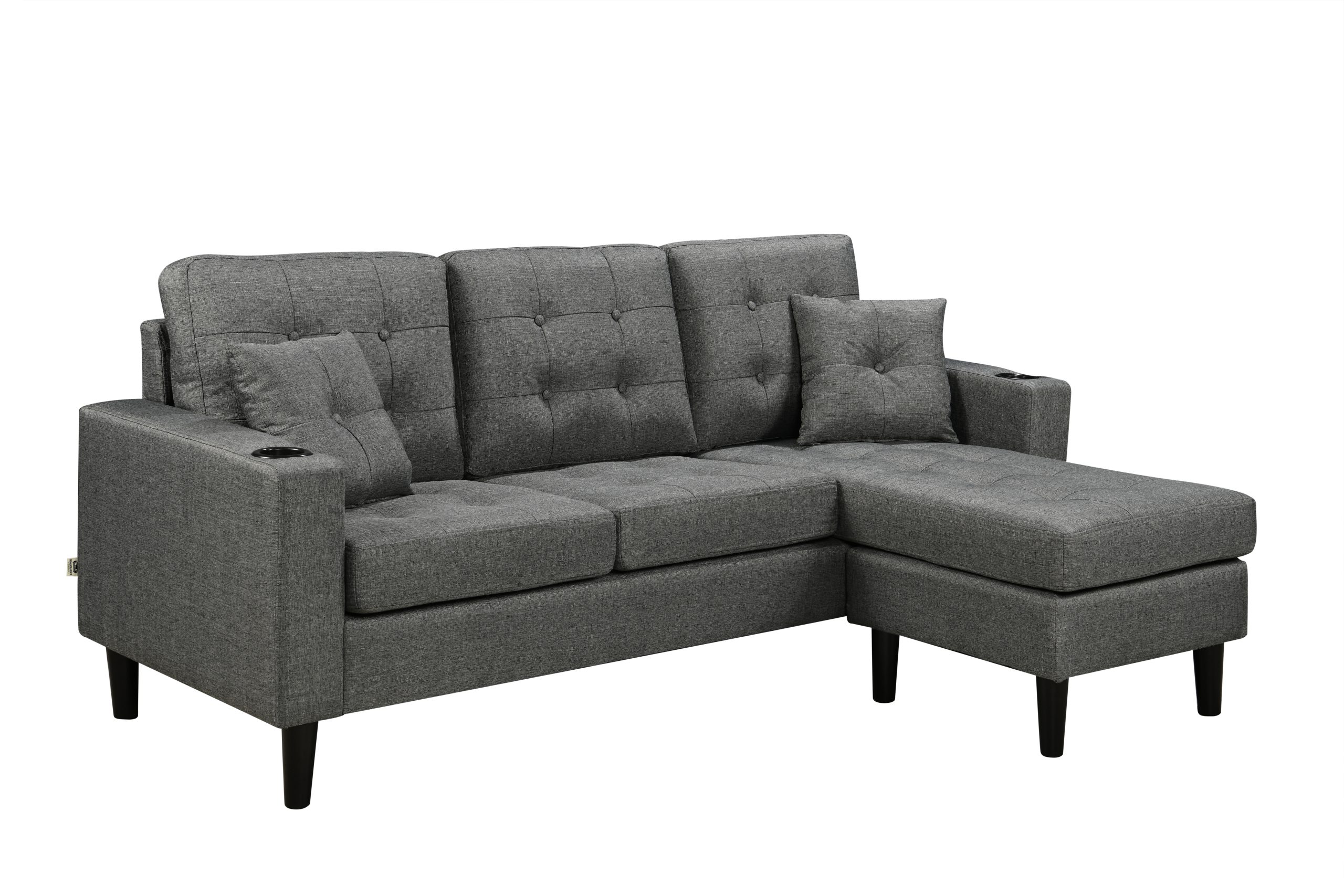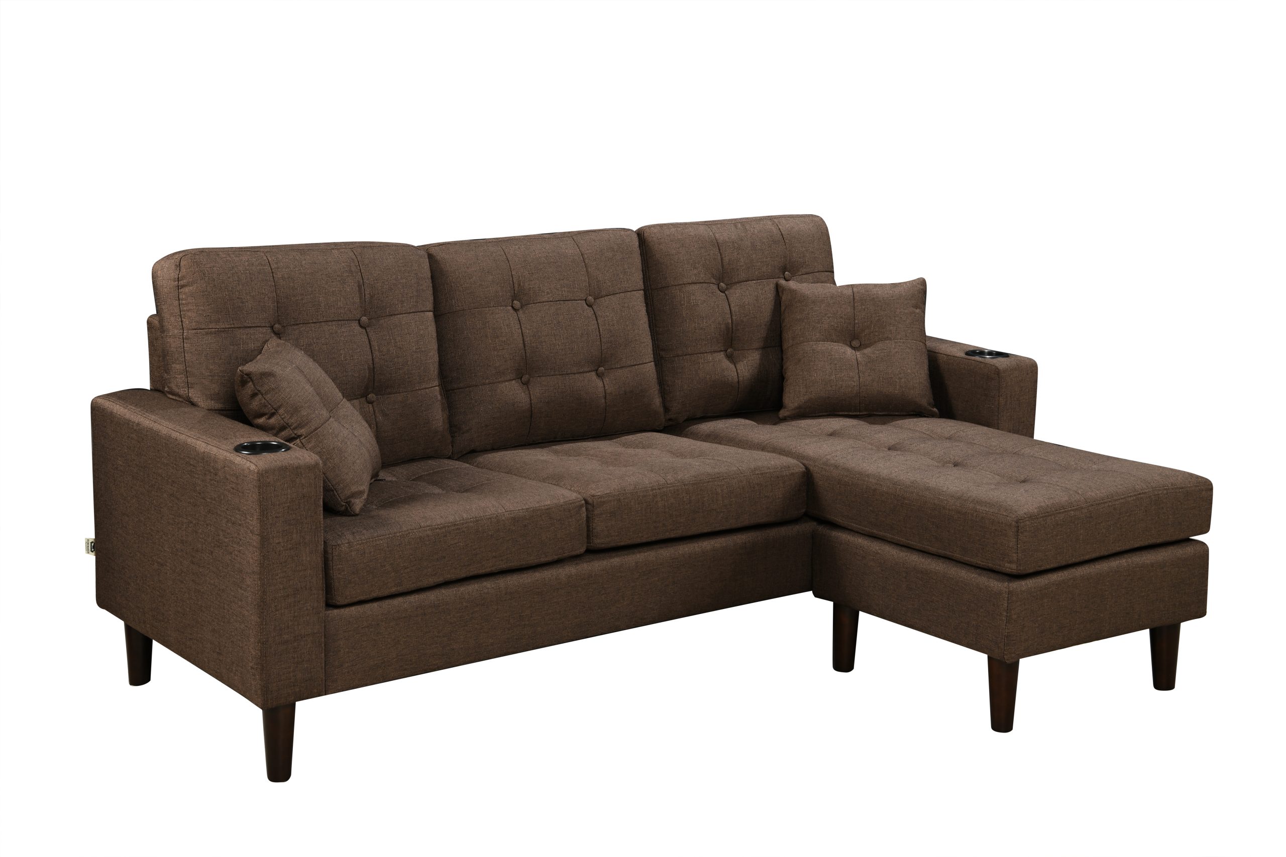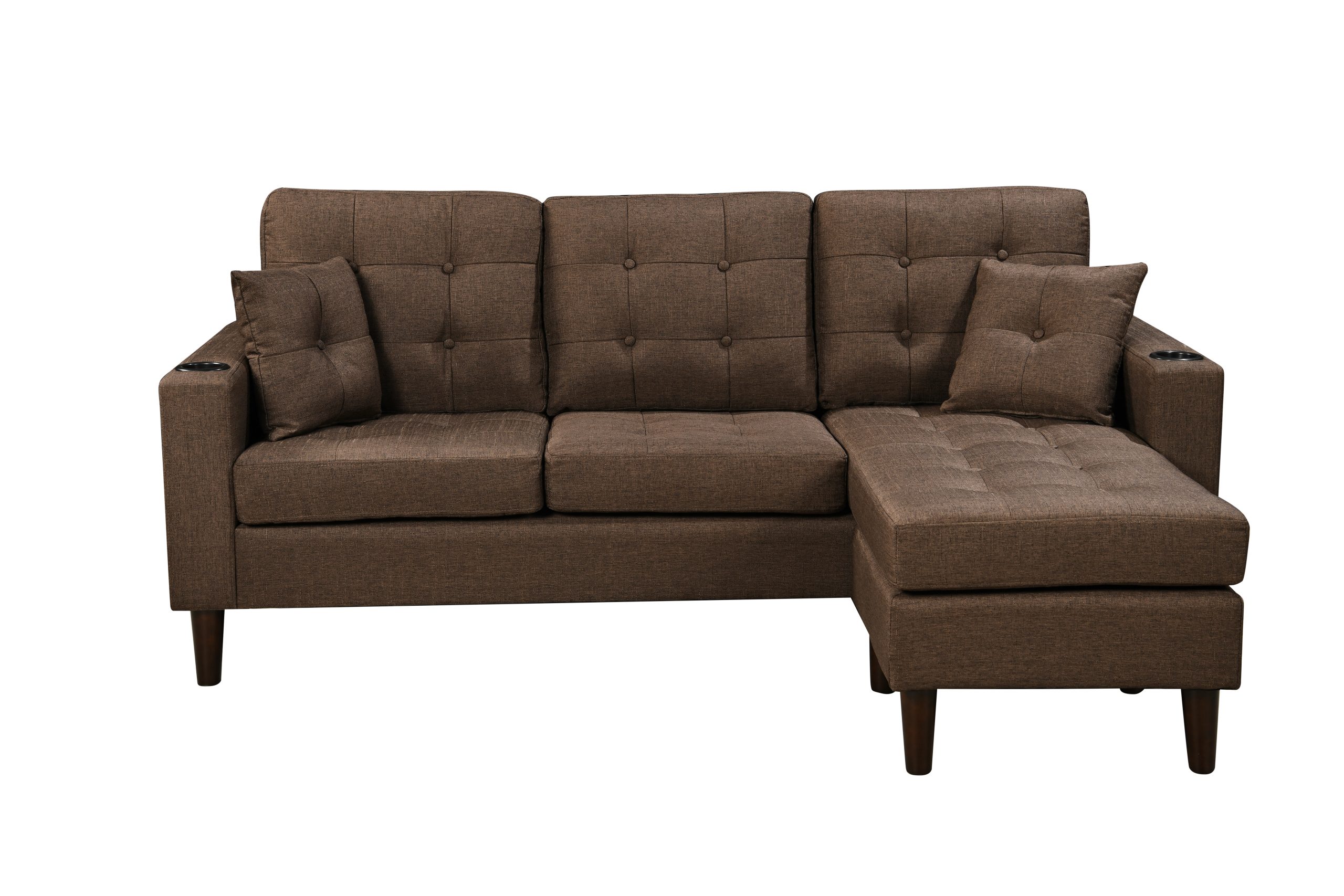 The 3-Seater Sofa comes with an ottoman and Cupholders.