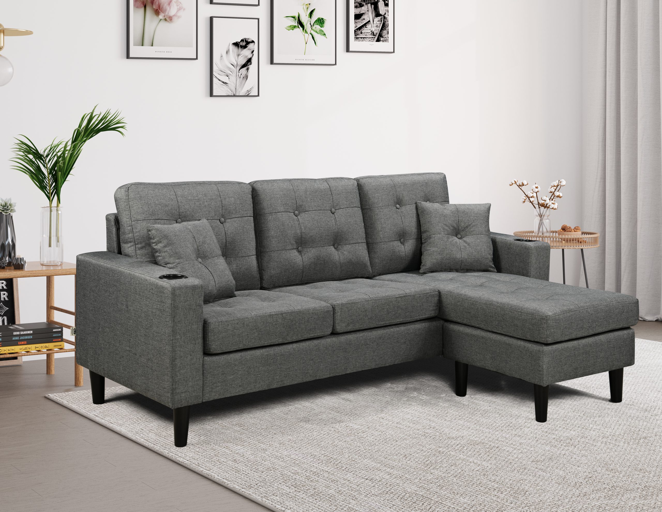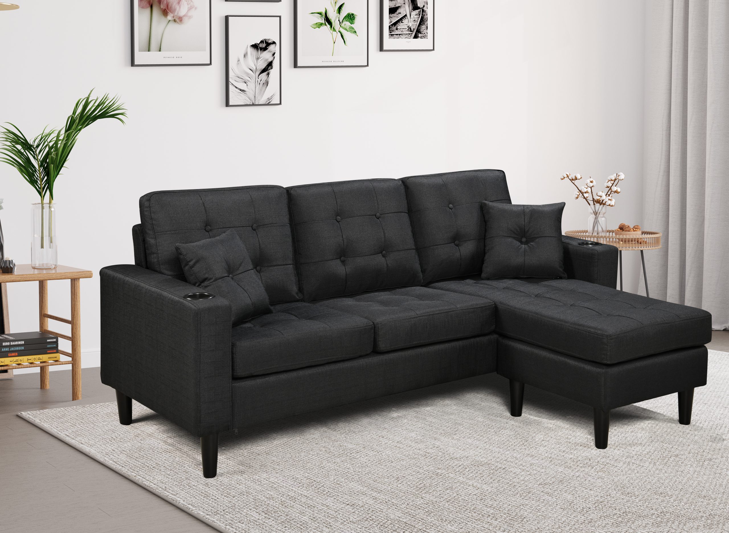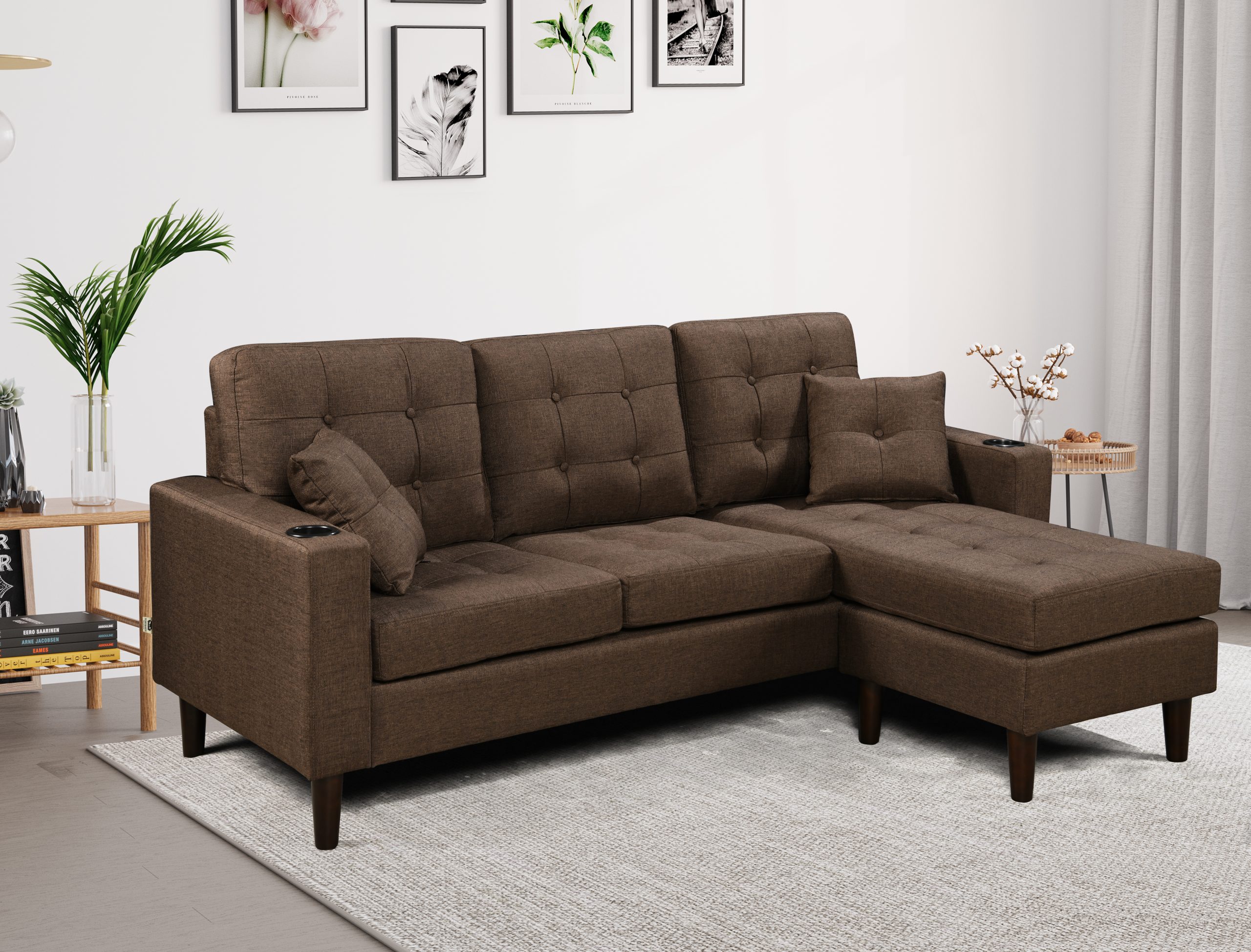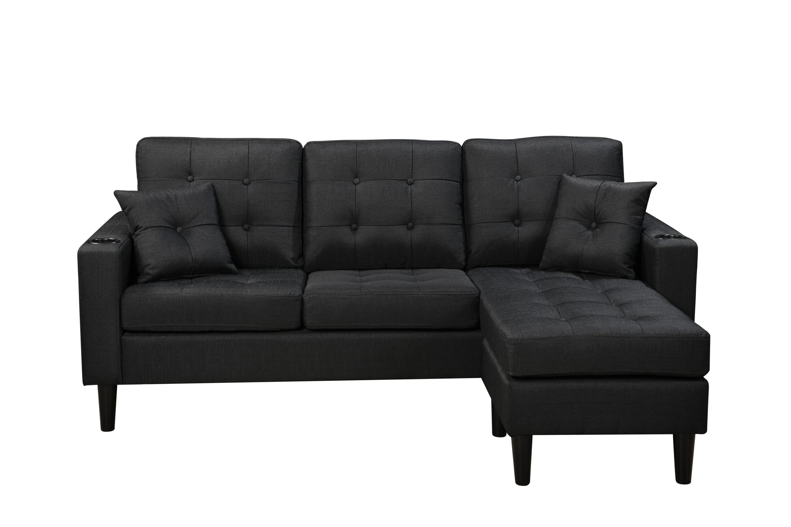The 3-Seater Sofa comes with an ottoman and Cupholders.
